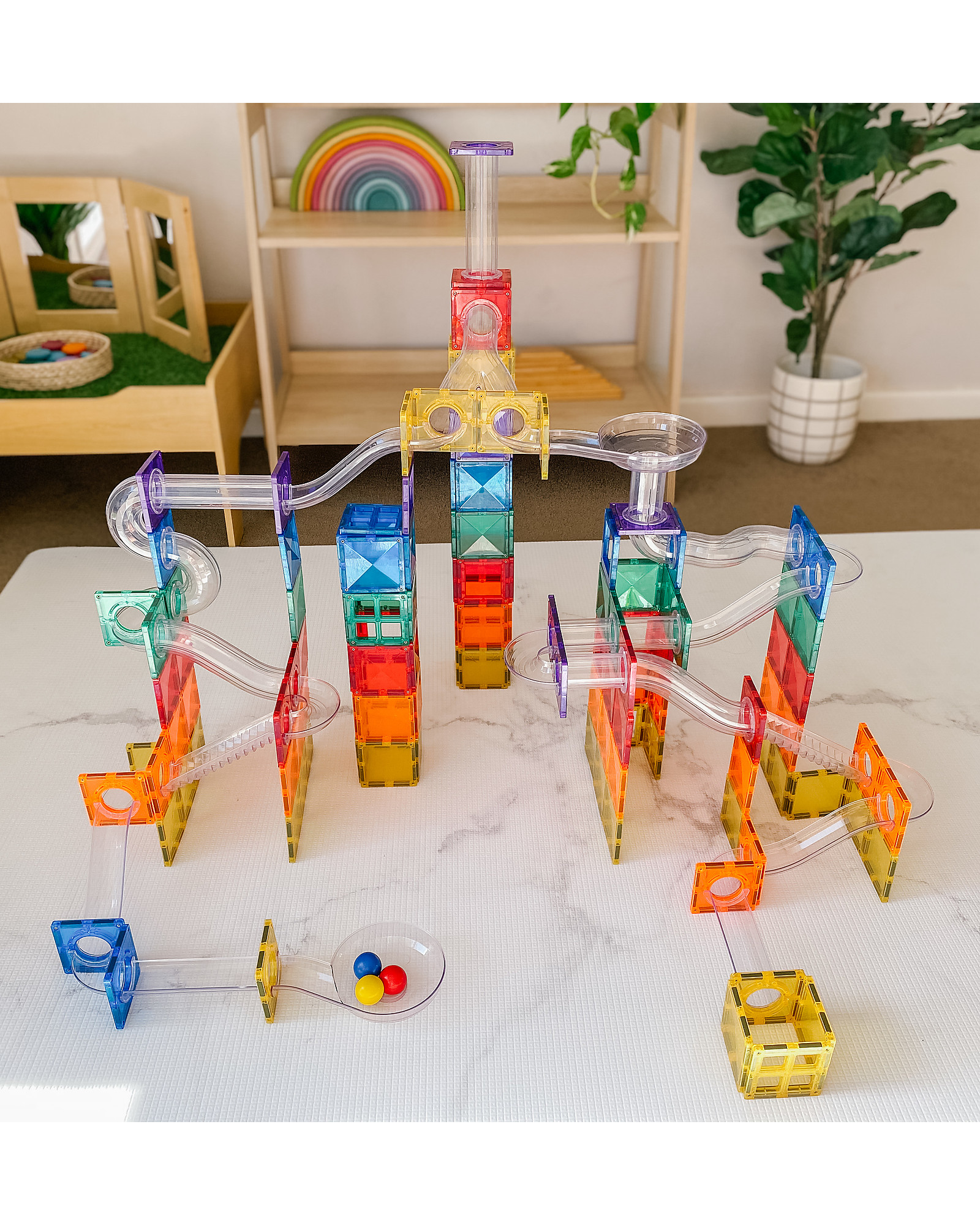 Pronti, immaginazione, via! Il set Tessere con Pista per palline del marchio australiano Connetix, ti accompagnerà in ore e ore di creatività illimitata e gioco. Immaginare, pensare, creare, costruire, divertirsi! Tanti colori, forme, tubi e dimensioni pronti a realizzare tutto ciò che la tua mente vorrà rendere reale. I giochi Connetix stimolano inoltre l’apprendimento STEM, l’avvicinamento alle discipline matematiche e scientifiche attraverso il gioco. Un gioco interminabile da combinare con tutti gli altri set del marchio!