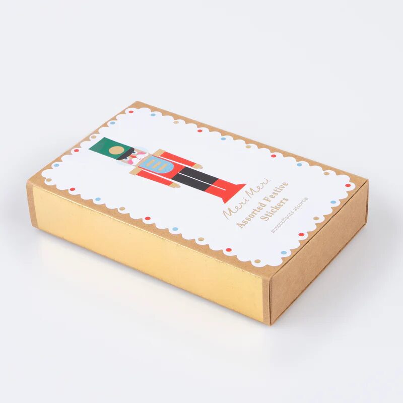 Basta far scorrere la scatola per rivelare i iconici adesivi di Nutcracker di Meri Meri. Gli adesivi sono perfetti per decorare cartoline di Natale, etichette regalo o per mestieri festivi. Fanno anche favolosi bomboniere o regali per sacchetti per feste.