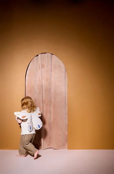 “Le farfalle fluttuano sulle brezze leggere, le loro ali delicate dipingono l’aria con un movimento delicato.” Queste ali a farfalla sono progettate per essere indossate sulla schiena con spalline elastiche, rendendo il vestire semplice e comodo. Le ali sono imbottite per mantenere la forma durante il gioco e i dettagli ricamati aggiungono stabilità e texture. Il gioco con il travestimento aiuta i bambini a esplorare la loro creatività e le loro capacità narrative, e ali come queste incoraggiano il movimento attivo mentre fingono di “volare”. Questo design semplice rende facile per i bambini indossarli da soli, favorendo il gioco indipendente.