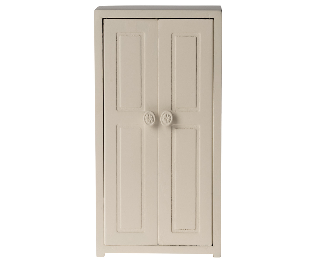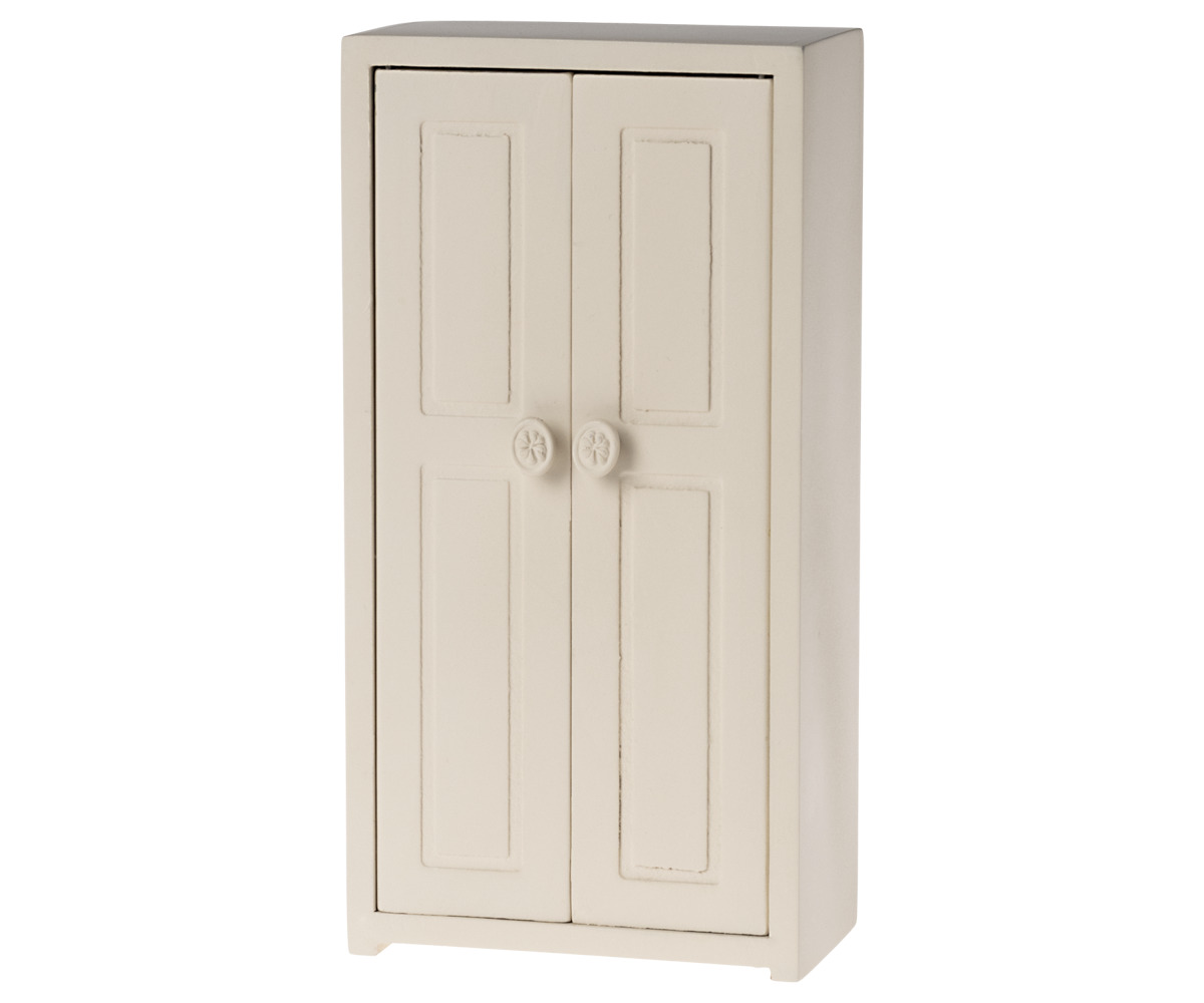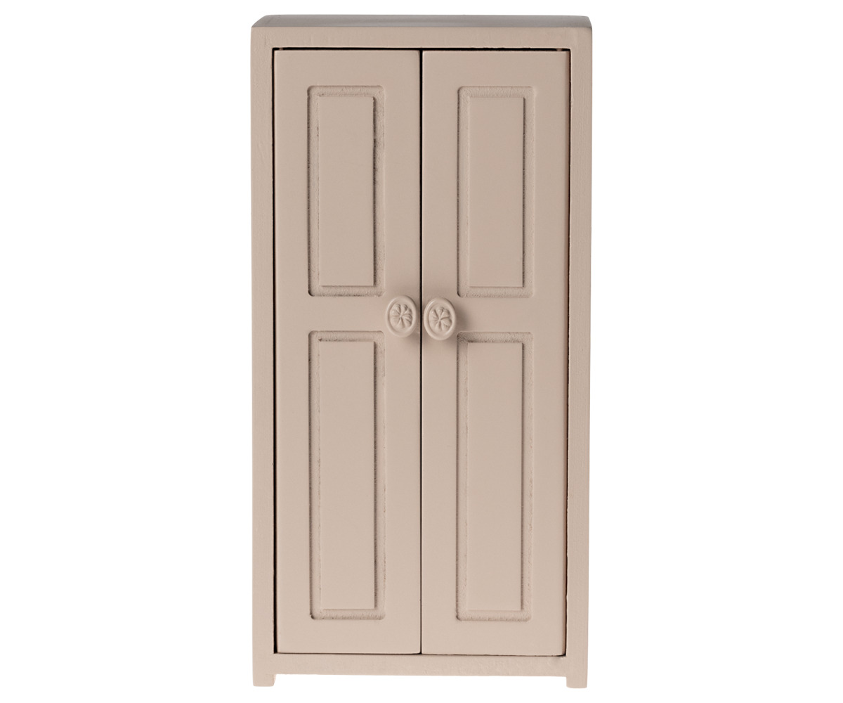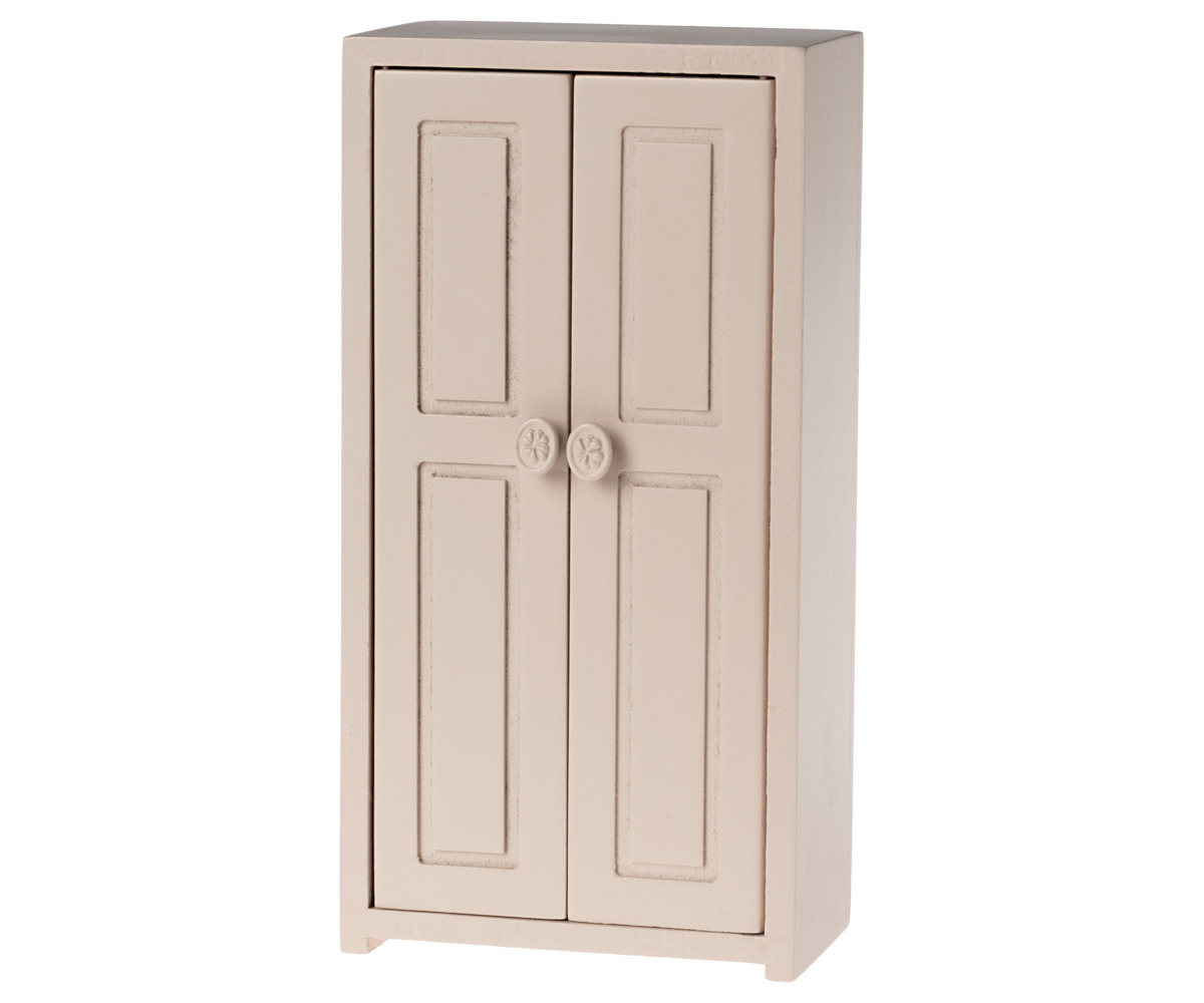 Un piccolo armadio aiuta la famiglia dei topi a organizzare il proprio guardaroba. L’armadio viene fornito con tre grucce dorate.