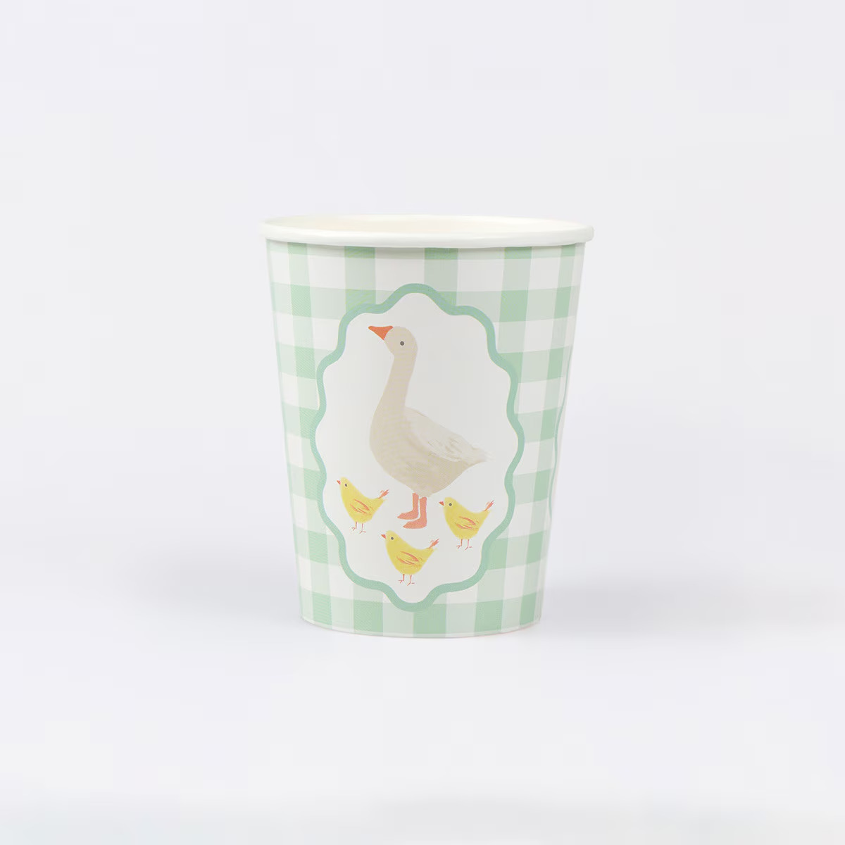La collezione Little Animals di Meri Meri è piena di fascino da fiaba, ispirata ai libri per bambini d’epoca, alle animazioni degli anni ’40 e alle classiche carte da parati floreali. Questi bicchieri di carta presentano animali ad acquerello morbido, tra cui oche, cerbiatti, conigli, scoiattoli e pulcini, cerbiatti; abbinato a un design a quadretti senza tempo, per portare una dolce bellezza al tavolo della tua festa. Perfetto per bevande calde e fredde per compleanni piccoli o baby shower.