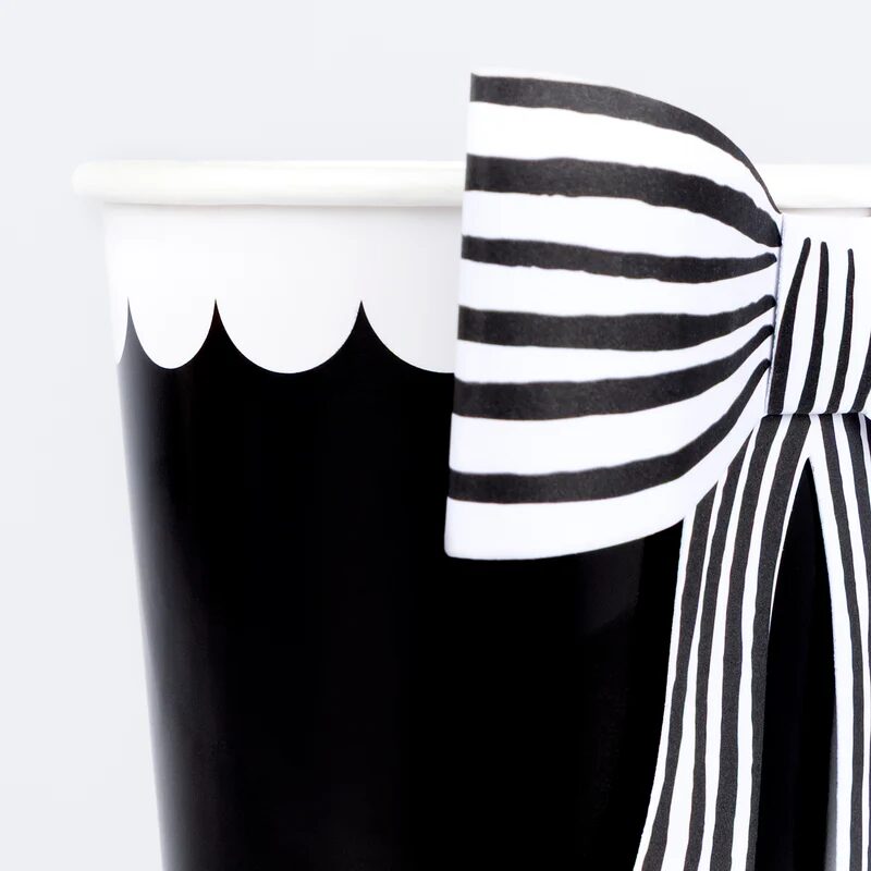 Entusiasma piccole streghe e maghi con una festa di Halloween elegante e decorata in modo inquietante. Queste tazze nere, adornate con eleganti fiocchi a righe, aggiungono un tocco affascinante ai tuoi drink per le feste. Il classico design in bianco e nero si abbina magnificamente al resto delle stoviglie e delle decorazioni di Halloween.