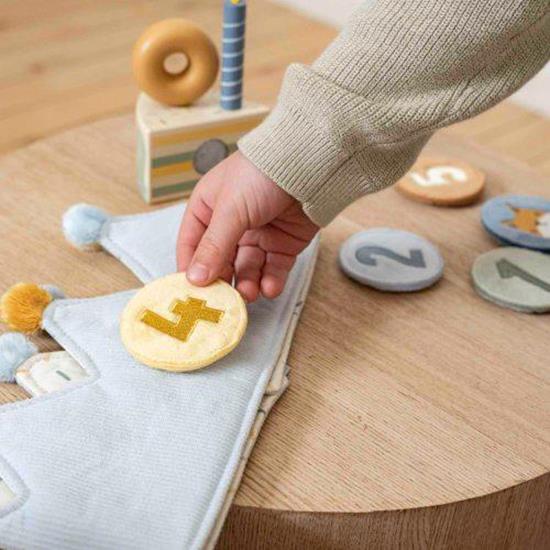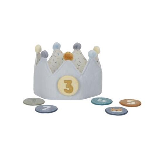 Buon compleanno a te! Festeggia con stile con questa adorabile corona di compleanno e cospargi un po’ di magia fiabesca nel tuo giorno speciale. Viene fornito con numeri intercambiabili da 1 a 5, che lo rendono perfetto per i traguardi di crescita del tuo piccolo. Attacca il numero del compleanno alla corona e cattura quei momenti preziosi! Oppure opta per la placca on la volpe quando il tuo piccolo vuole essere il re o la regina del paese delle meraviglie di tutti i giorni. La corona è realizzata in morbido tessuto imbottito e a coste di colore azzurro chiaro sormontato da pompon colorati. La chiusura in Velcro permette alla corona di adattarsi e crescere con il tuo bambino. Guarda il tuo piccolo indossare con orgoglio la corona, mostrando la sua età con ogni sorriso e risatina. Buona festa!