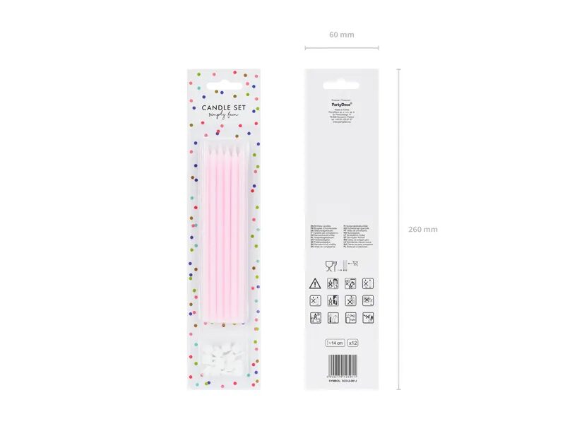 Candele di compleanno semplici, altezza circa 14 cm. Il set contiene 12 candele e portacandele.