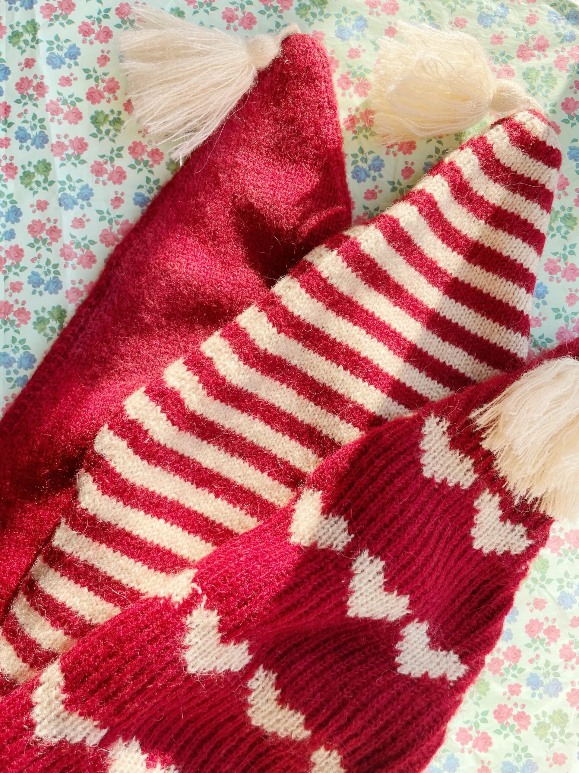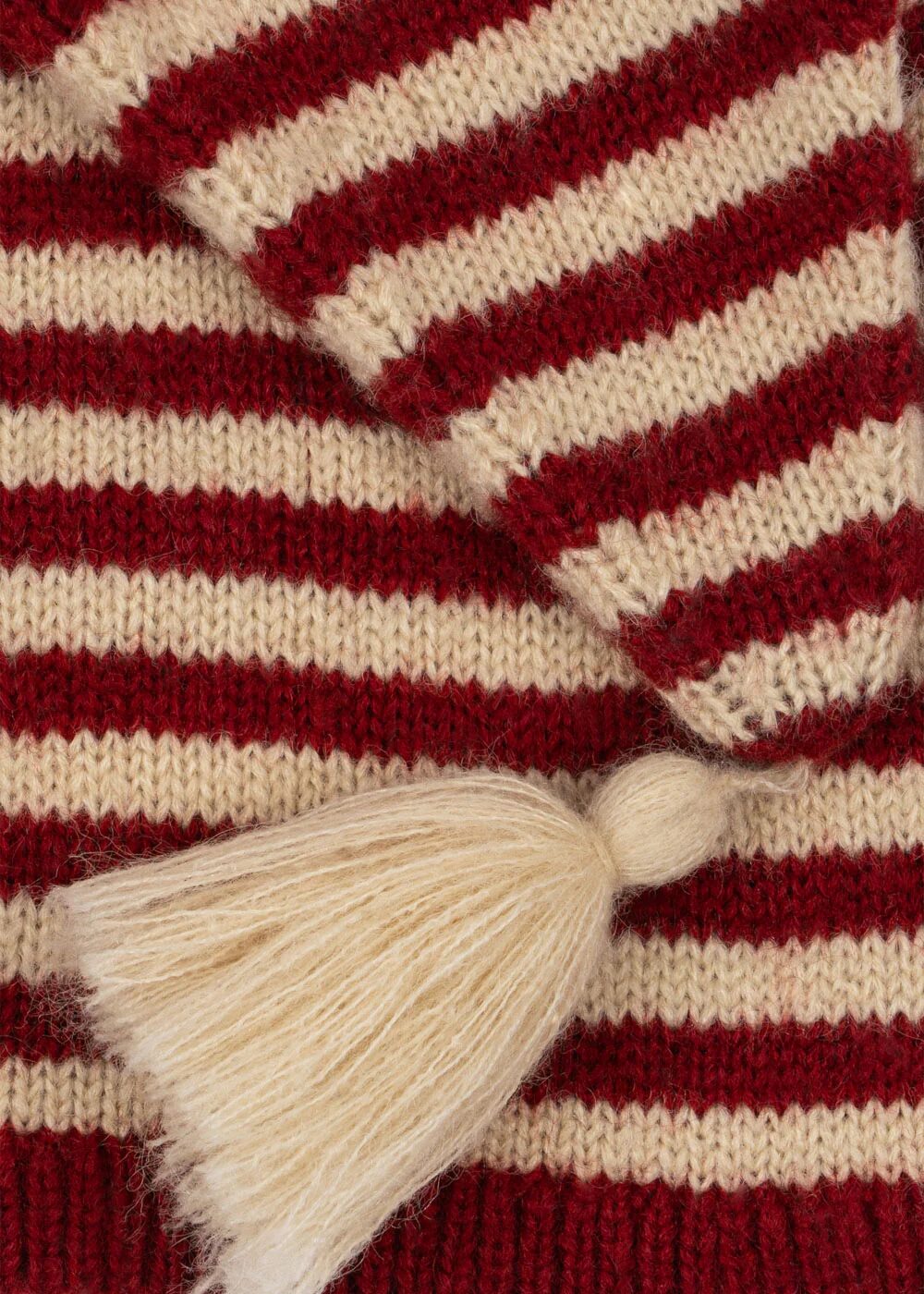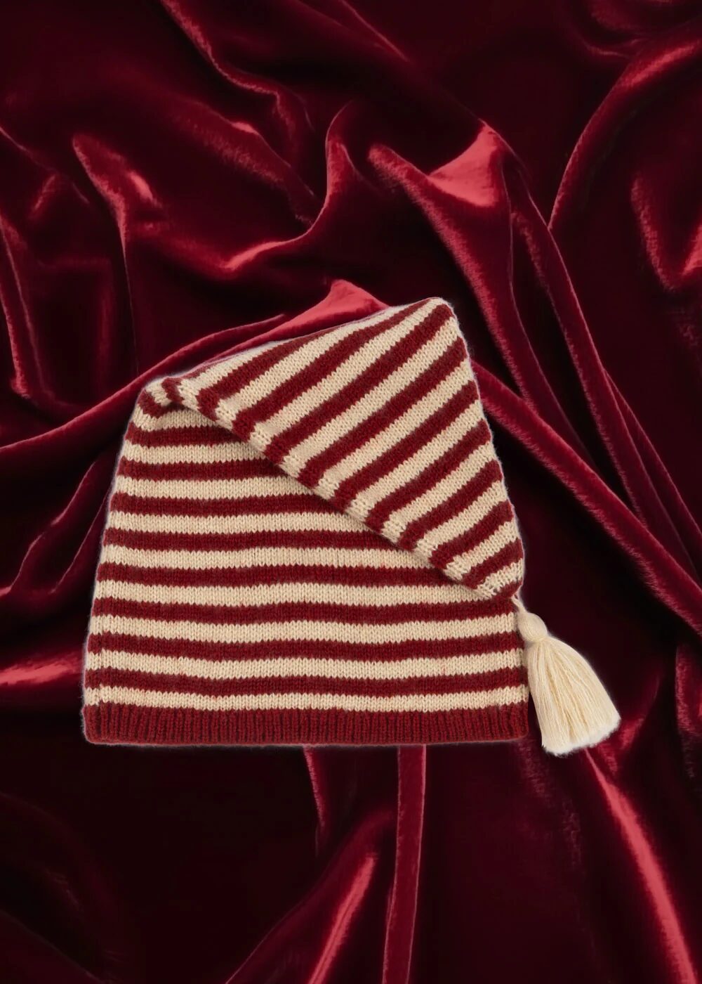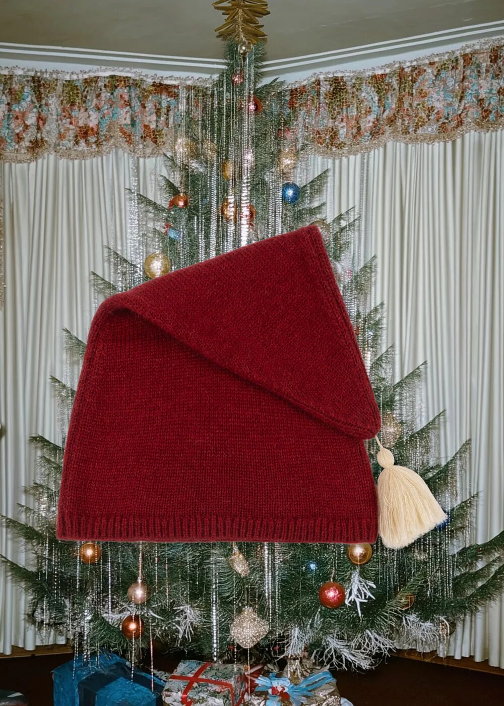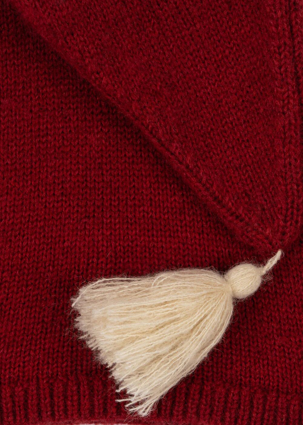 Cappello natalizio lavorato a maglia in un caldo misto lana alpaca con una nappa decorativa.