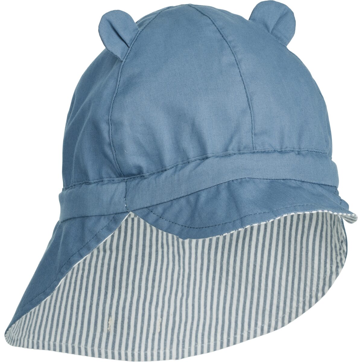 Caratteristiche: reversibile, leggero, traspirante, con orecchie decorative, tesa morbida e modellabile, laccetti regolabili sul retro, protezione extra sul collo