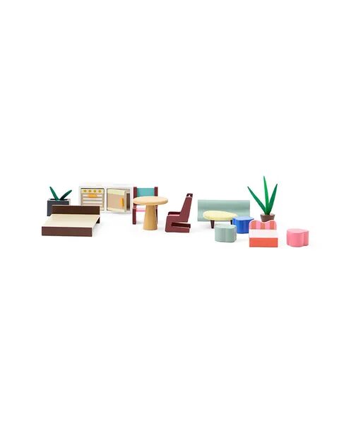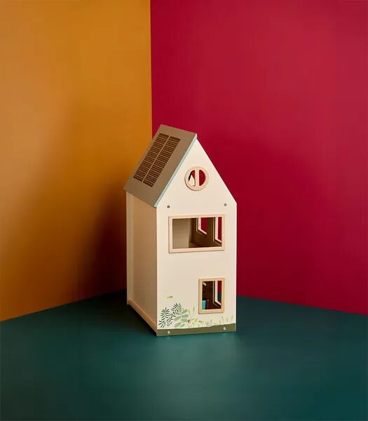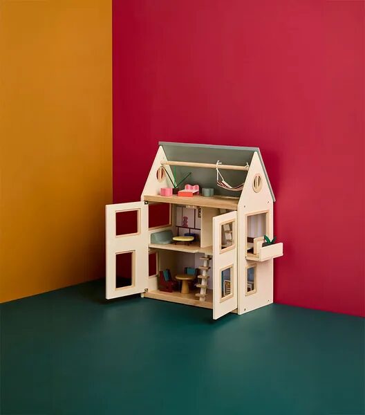 Benvenuti nella casa di una famiglia che ama l’interior design. Questa casa su tre livelli di Kid’s Concept mette in mostra stili, colori e mobili coordinati raccolti da avventure in tutto il mondo. Dispone di pannelli solari sul tetto e di una sala giochi all’ultimo piano con un’amaca per il relax. Il giardino è pieno di alberi e fiori che attirano le api e creano uno spazio esterno tranquillo. La casa delle bambole ha tre livelli, porte d’ingresso, grandi finestre e un tetto che si apre per un facile accesso durante il gioco. La parete di fondo è dotata di “carta da parati” stampata ed elementi decorativi, ma può anche essere invertita per rivelare semplici pareti bianche, consentendo una decorazione personalizzata. Il balcone comprende una piccola pianta in vaso. La casa delle bambole è completamente arredata con un divano, un tavolino, due sedie da pranzo, un tavolo da pranzo, un mobile da cucina, un letto matrimoniale, un letto singolo per bambini, un’amaca e tre sgabelli che possono essere utilizzati anche come tavolini. Progettato in scala 1:12, lo standard per le case delle bambole, offre flessibilità per l’aggiunta di altri set di mobili e accessori, facilitando la creazione di uno spazio splendidamente decorato.