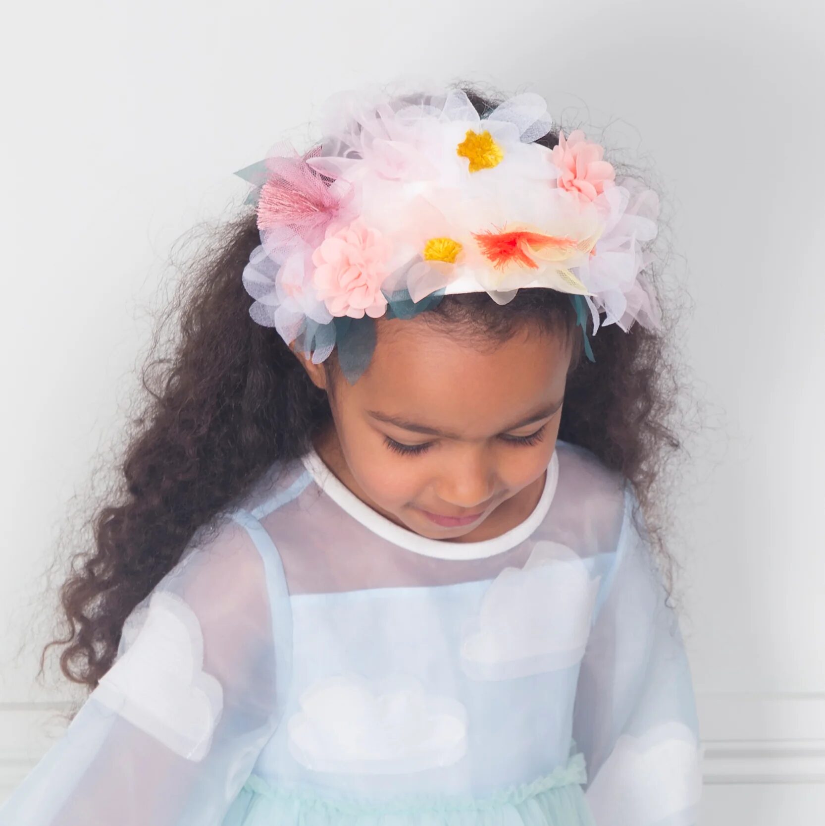 I bambini che amano i copricapi colorati adoreranno assolutamente questa sensazionale fascia. È sapientemente realizzato con fiori di organza e tulle, foglie di organza e deliziose nappe e pompon. Perfetto da indossare ad una festa, o ad ogni evento speciale dove si desidera un tocco di bellezza floreale.
