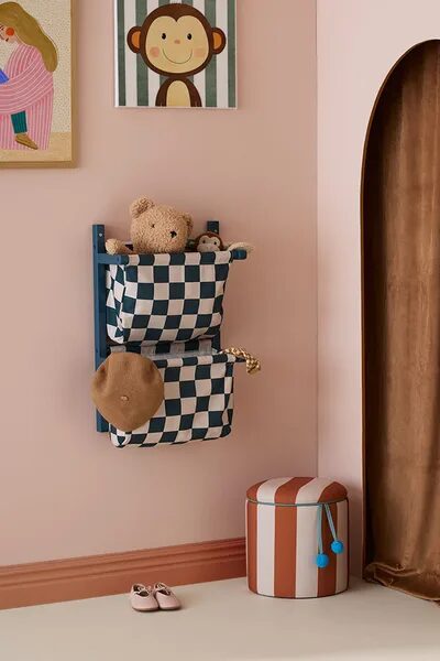 In una stanza di bambino piena di giochi e immaginazione, uno spazio intelligente fa tutta la differenza, tenere giocattoli, vestiti e articoli per lavoretti a portata di mano e fuori dai giochi, non semplicemente sdraiati sul pavimento. Il contenitore delle tasche a muro presenta una struttura in legno certificato FSC abbinata a tasche in tessuto a quadretti teal. Ogni tasca resta aperta per avere un facile accesso a peluche, vestiti o qualsiasi cosa tu voglia conservare. Ideale per qualsiasi corridoio che conserva vestiti e accessori morbidi sia per l’inverno che per l’estate. Questa unità leggera favorisce l’indipendenza permettendo ai bambini di vedere e raggiungere le loro cose, liberando spazio sul pavimento per il gioco. Puoi montare diverse unità—impilate verticalmente o fianco a fianco, a seconda dello spazio. Posiziona la mensola in un’altezza che il tuo bambino possa raggiungere, così da supportare l’uso quotidiano e le abitudini di ordine. I fissaggi a parete non sono inclusi, poiché diversi tipi di parete richiedono viti o spine differenti. Questo pezzo di conservazione trasforma il riordino in un’abitudine facile, aggiunge un tocco di motivo e libera il pavimento per ciò che conta di più: il gioco.