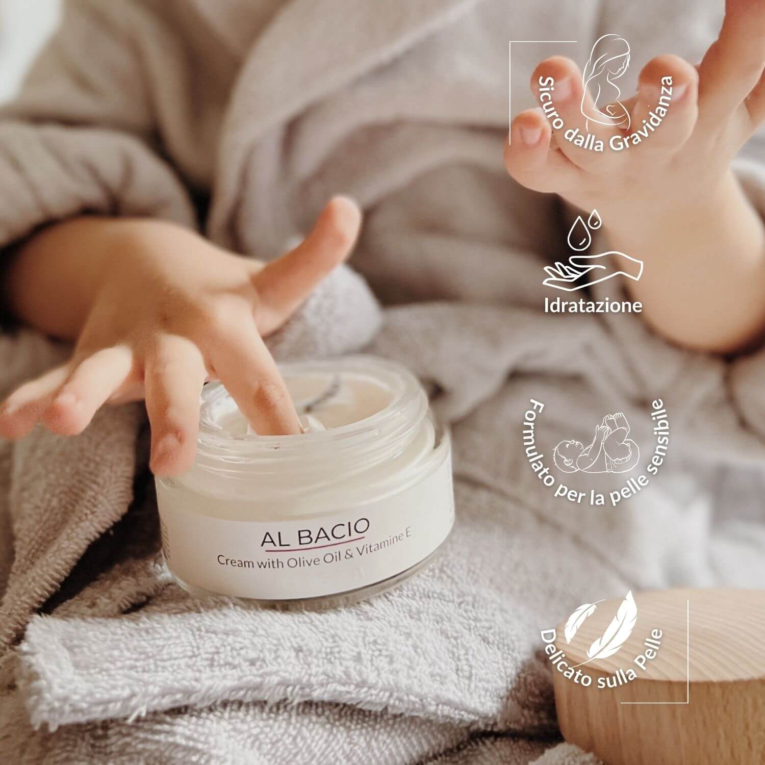 Può essere utilizzato dalla mamma già a partire dalla gravidanza ed è particolarmente indicato per la pelle più sensibile dei neonati e dei bambini.