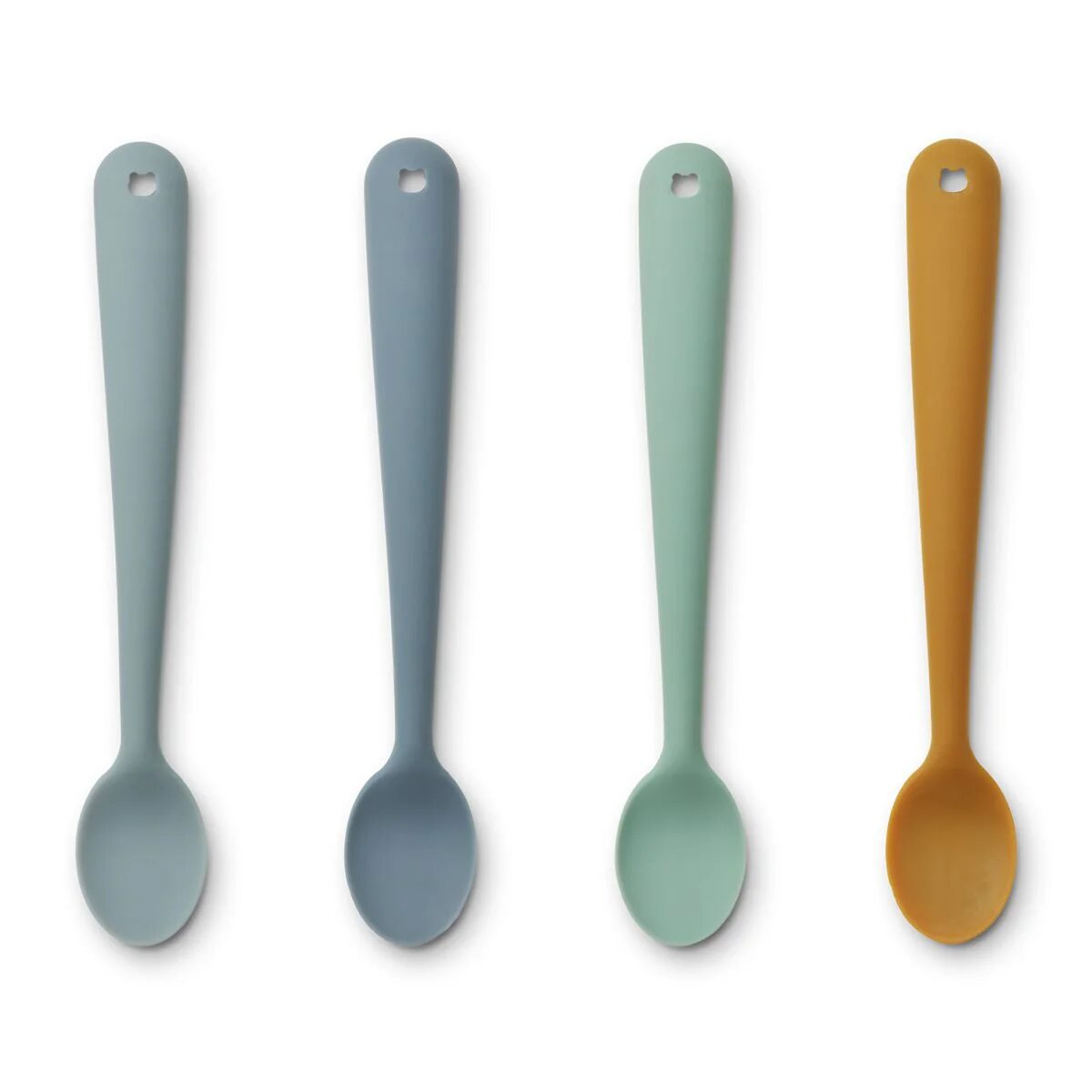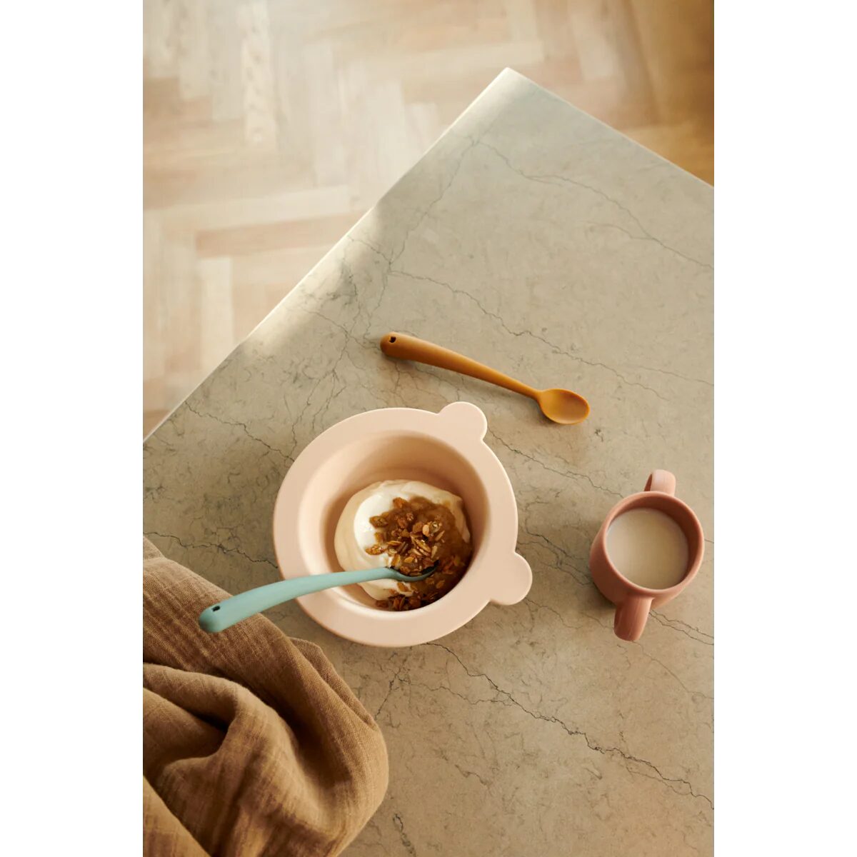 Lunghi cucchiai di alimentazione Siv di Liewood in morbido silicone. Il silicone è comodo sulle gengive del tuo bambino e il manico più lungo ti aiuta a guidare il cibo nella bocca del tuo piccolo.