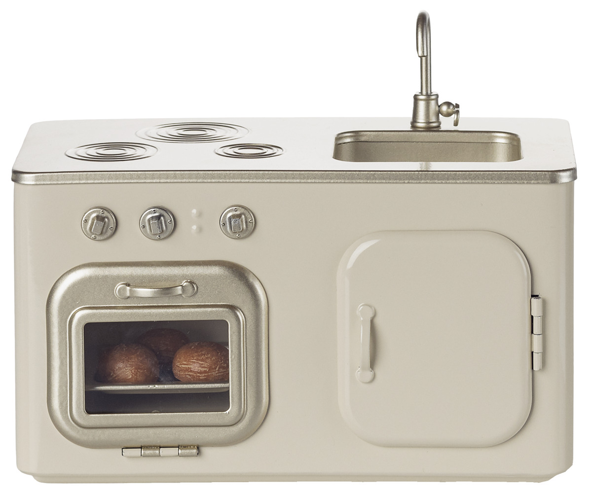 La bellissima cucina in miniatura di Maileg è indispensabile in qualsiasi casa. Si inserisce perfettamente nella Casa Maileg e nelle case delle bambole in miniatura. La cucina è dotata di 3 panini appena sfornati ed è fatta in metallo per garantire una lunga durata con ore di gioco.
