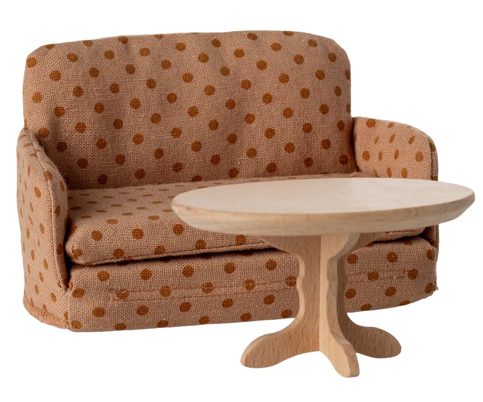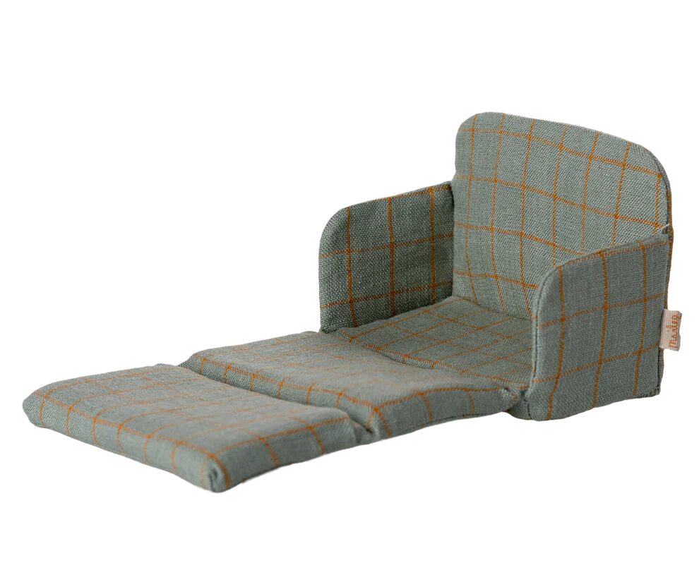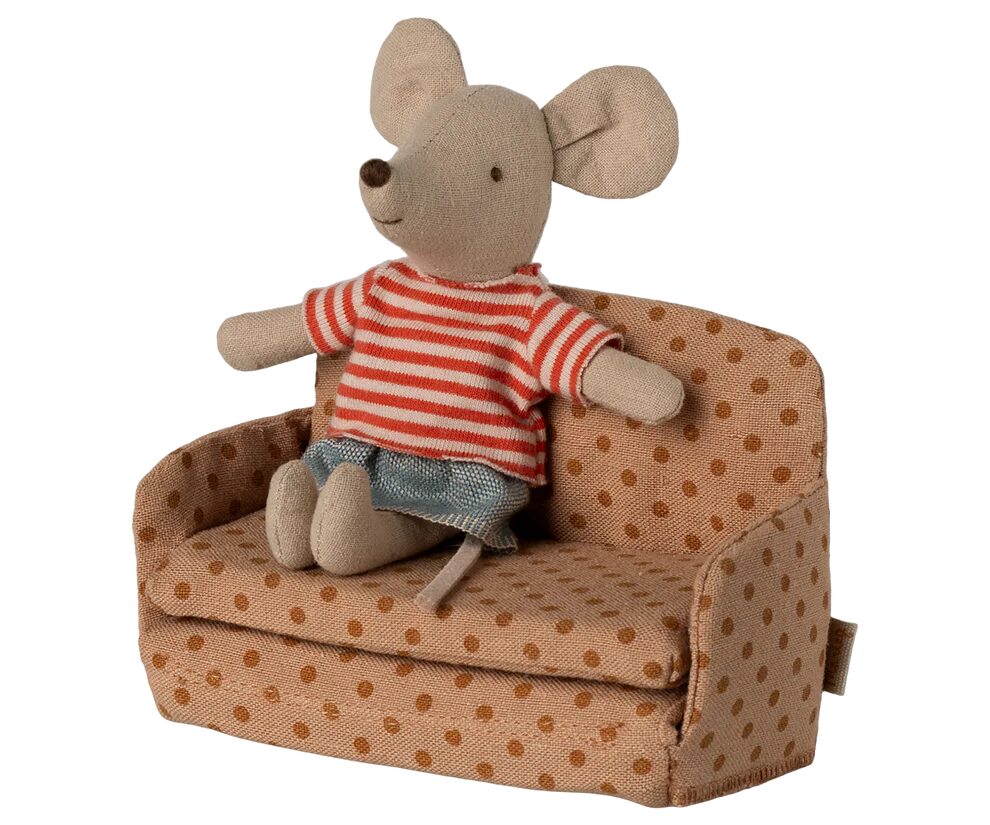 Cerchi una soluzione pratica per la tua famiglia di mouse di Maileg? Questo divano può essere utilizzato sia come divano che può essere facilmente trasformato in un letto in quanto può essere aperto. È realizzato in qualità morbida per una seduta comoda. Si adatta perfettamente al soggiorno di SuitCasa.