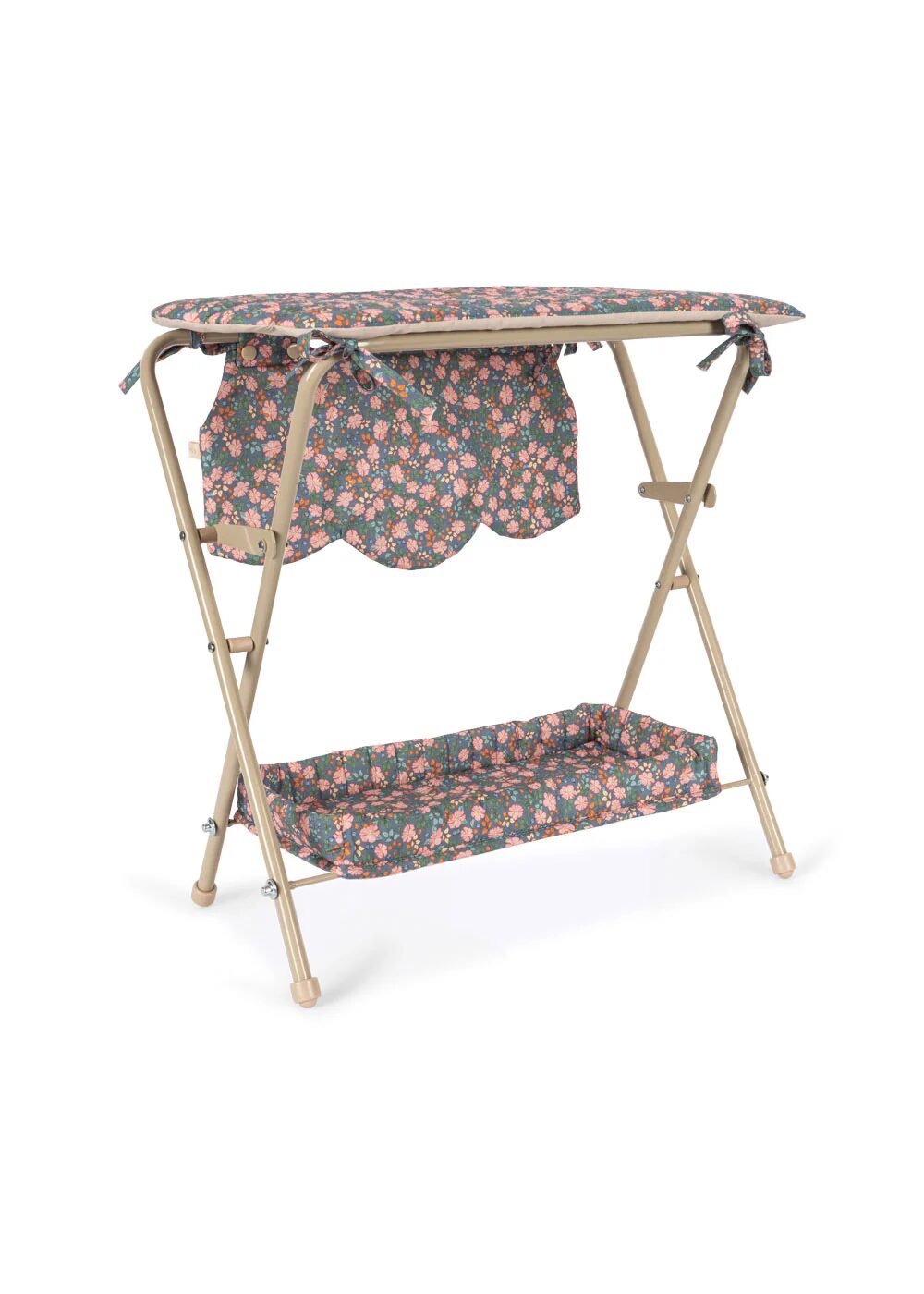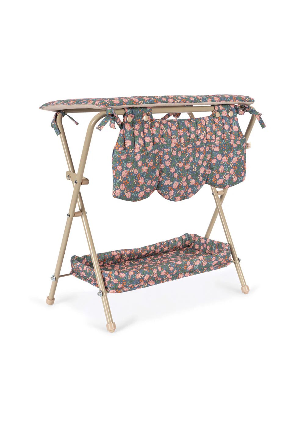 Fasciatoio per bambole di Konges Slojd realizzato in cotone riciclato al 100% con struttura in ferro e tanto spazio per riporre gli accessori per le bambole. Facilmente pieghevole.