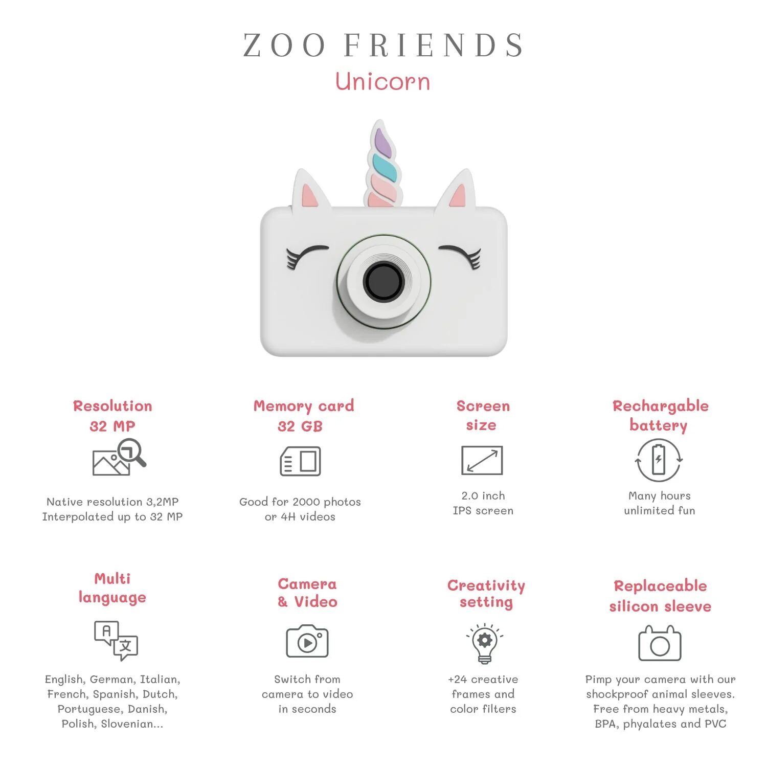 Questa fotocamera digitale per bambini da 32 megapixel di The Zoofamily è estremamente carina, piccola e leggera. Personalizza la fotocamera dei tuoi bambini con adesivi e persino 20+ filtri e cornici digitali per fotocamere.
