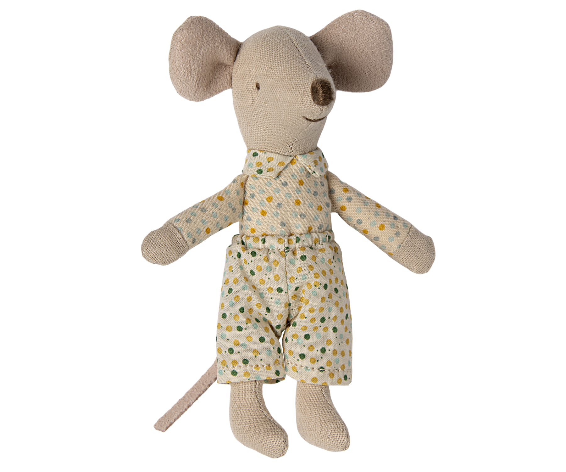 Un classico di Maileg. Il topo è pronto per ore di gioco e dorme nella scatola di fiamm. I vestiti e la biancheria da letto sono in morbidi tessuti con stampe uniche in bellissimi colori. Per ampliare la storia, aggiungete gli accessori.