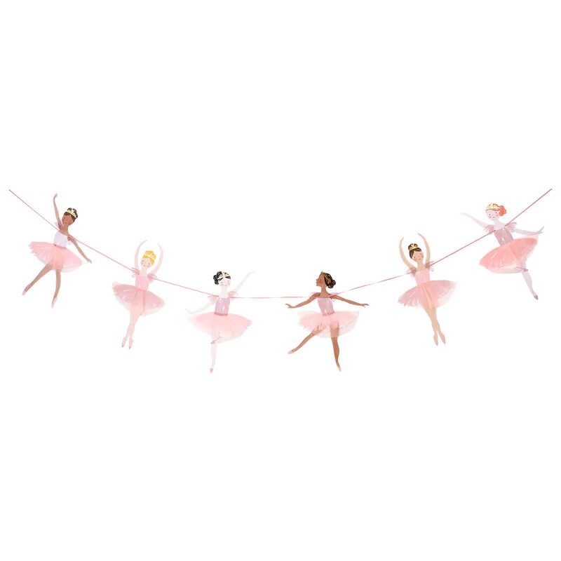 Le ghirlande sono uno splendido modo di tendenza per decorare una festa. Questa bella ghirlanda di ballerine di Meri Meri presenta ballerine con graziosi dettagli in tutù in tulle. È perfetto da appendere in un punto focale della sala delle feste e ideale anche come decorazione per la camera da letto in seguito.
