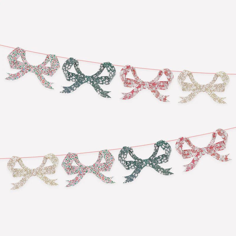 Ghirlanda di carta con 8 gagliardetti con fiocco 3D in stampe floreali festive Liberty