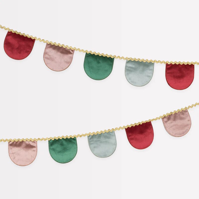 La sontuosa ghirlanda in velluto di Meri Meri aggiungerĂ  immediatamente un aspetto lussuoso alle tue feste. Abbina magnificamente bandiere sagomate smerlate, in un mix di colori natalizi tradizionali e moderni, con un abbellimento ric ric dorato di tendenza. Perfetto da appendere alla porta, sulla mensola del camino o drappeggiato sul tavolo delle feste, da utilizzare anno dopo anno.