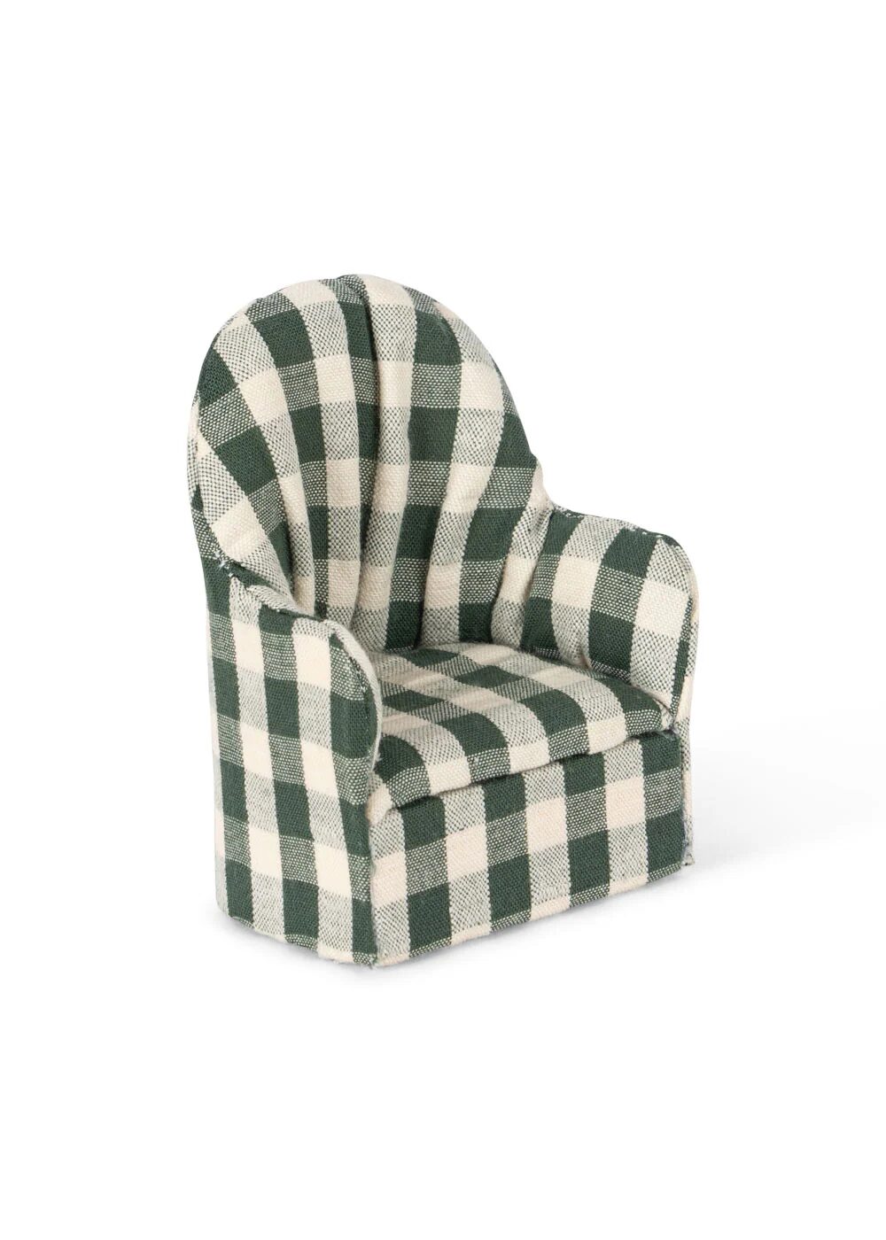 Dolce piccolo orsacchiotto in miniatura di Konges Slojd. Kalle è contenuto in una piccola scatola e porta persino la sua poltrona ispirata al vintage.