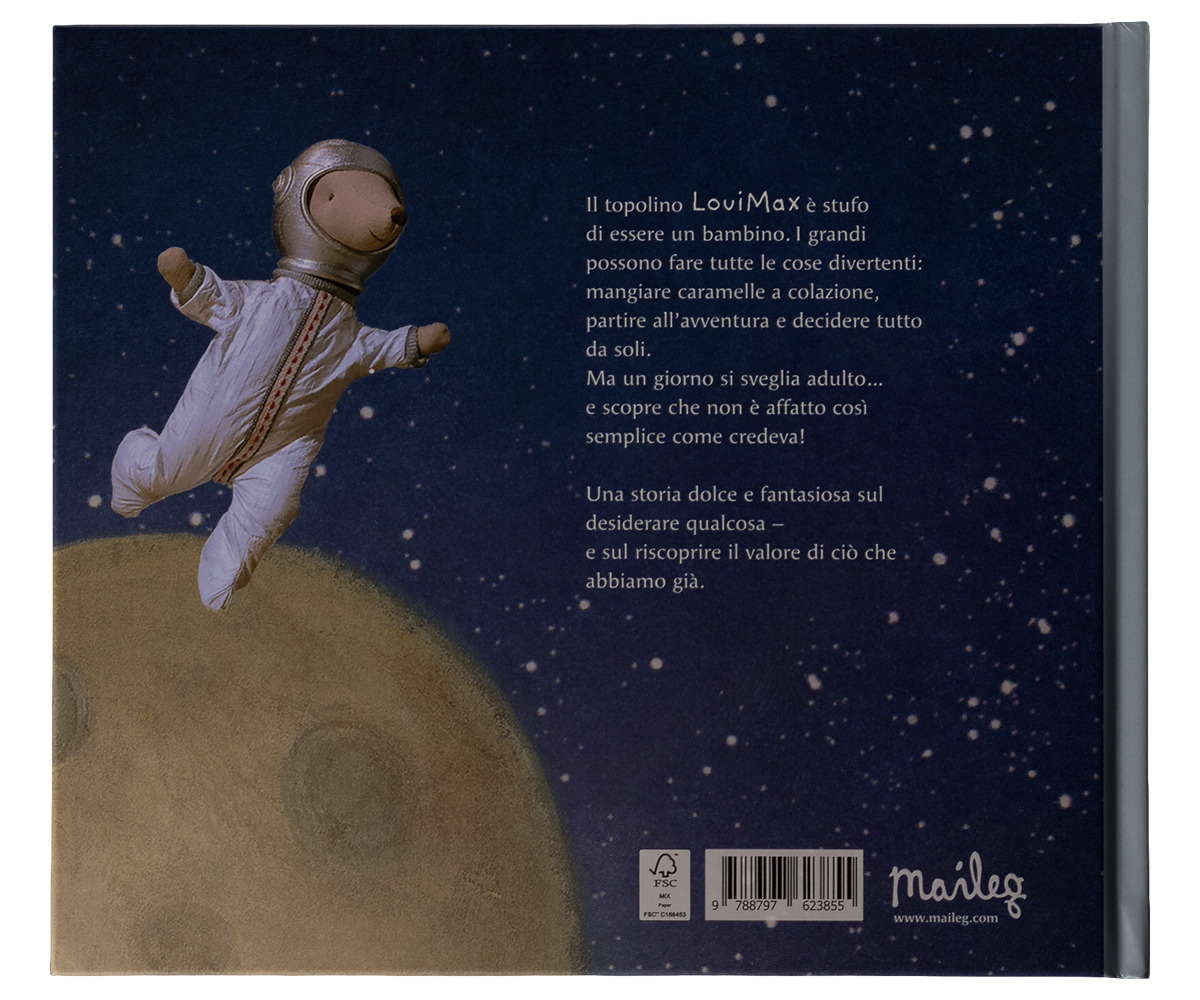 LouiMax il topo di Maileg è stanco di essere un bambino. Gli adulti si divertono al massimo. Una storia calda e divertente sul volere qualcosa e poi realizzare ciò che già si possiede. Il libro ha 56 pagine con bellissime illustrazioni.