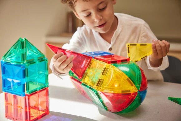 Ancora meglio! Costruisci contro il radiatore o altre superfici magnetiche e crea un’opera d’arte verticale. Oppure disegna tutti i tipi di lettere e numeri con i pennarelli cancellabili e scatena la tua creatività con i set di costruzioni magnetiche Cleverclixx.