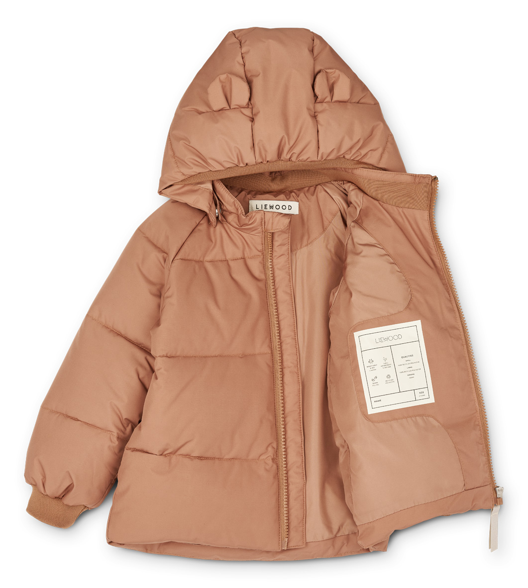 Pratico e giocoso. Il piumino antivento e traspirante Polle di Liewood è un piumino leggero che offre calore e comfort isolante nelle giornate fredde, oltre a un paio di orecchie extra.
