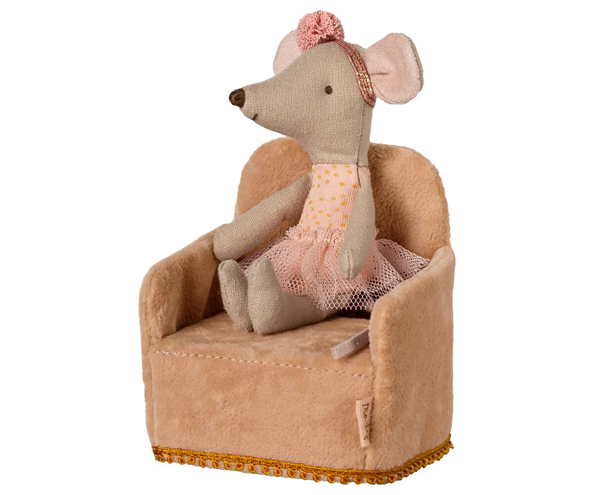 La poltrona pieghevole di Maileg è un luogo perfetto per far riposare i tuoi piccoli amici Maileg. Si adatta perfettamente alla casa di campagna di Maileg. La poltrona viene consegnata in confezione piatta ed è facile da piegare e montare.