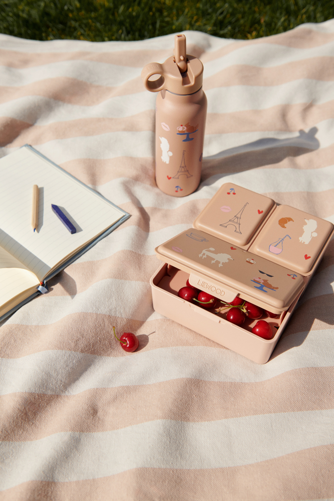 Un compagno divertente e funzionale per i pasti dei bambini in movimento. Il portapranzo Driss di Liewood è parzialmente realizzato in PET riciclato ed è dotato di tre scomparti intelligenti, che consentono di organizzare e versare i pasti. Ogni sezione può essere aperta separatamente, facilitando la presa di un piccolo spuntino durante il giorno.