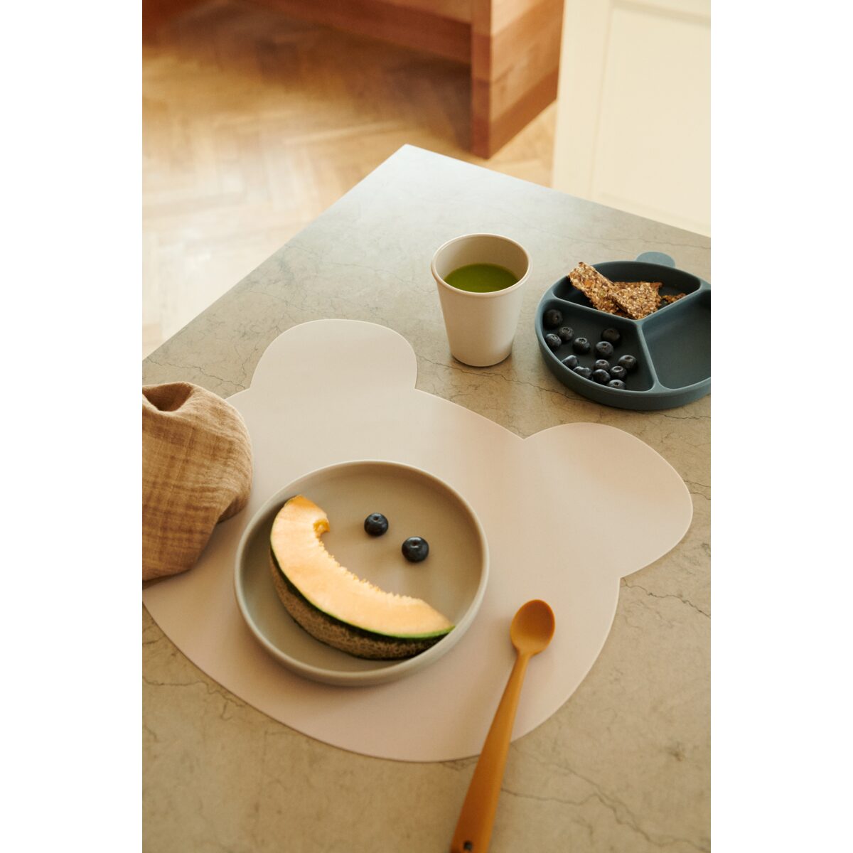 Realizzato in 100% silicone resistente e infrangibile, questo piatto è dotato di una base sottile in silicone che aderisce a molte superfici, aiutando a evitare che venga sollevato o rovesciato durante il pasto. I simpatici dettagli con orecchie da orsetto aggiungono un tocco giocoso e adorabile alla tavola. Inoltre, è lavabile in lavastoviglie, per una gestione pratica nella routine quotidiana.