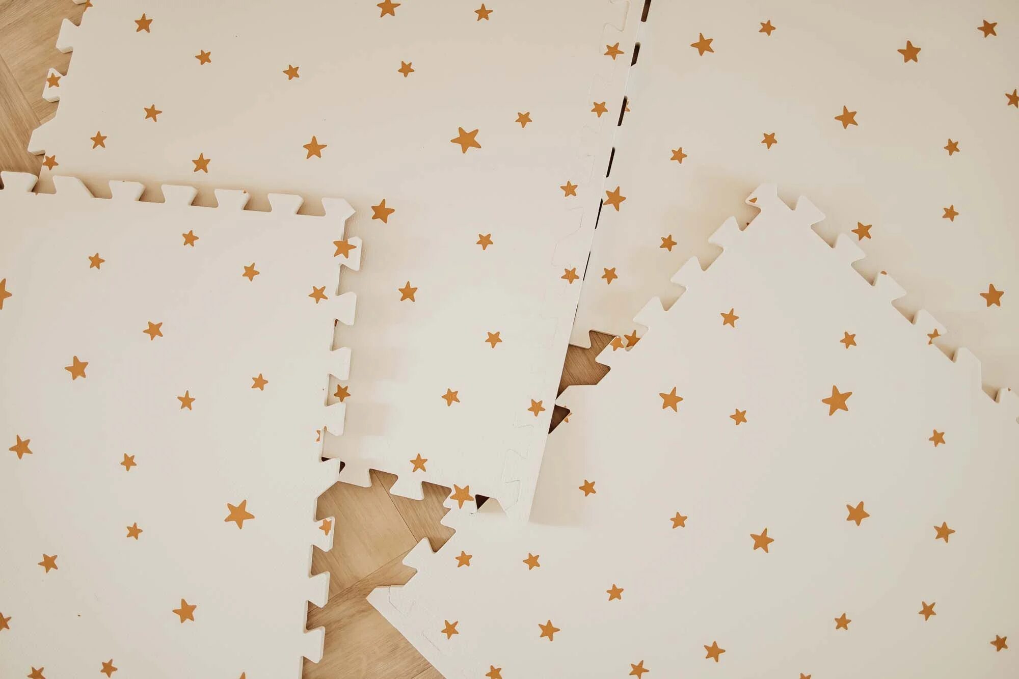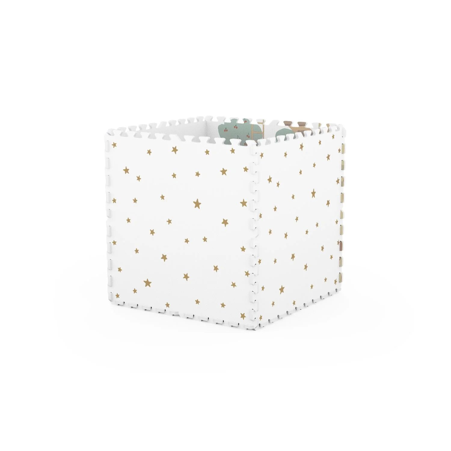 Ma l’incanto non finisce qui. Capovolgi il tappetino e lasciati incantare da un vibrante motivo a stelle in un sorprendente colore senape. Questo design cosmico aggiunge un tocco di fascino celestiale a qualsiasi stanza dei giochi o asilo nido, creando uno sfondo da sogno per giochi fantasiosi e accoglienti incontri di storie.