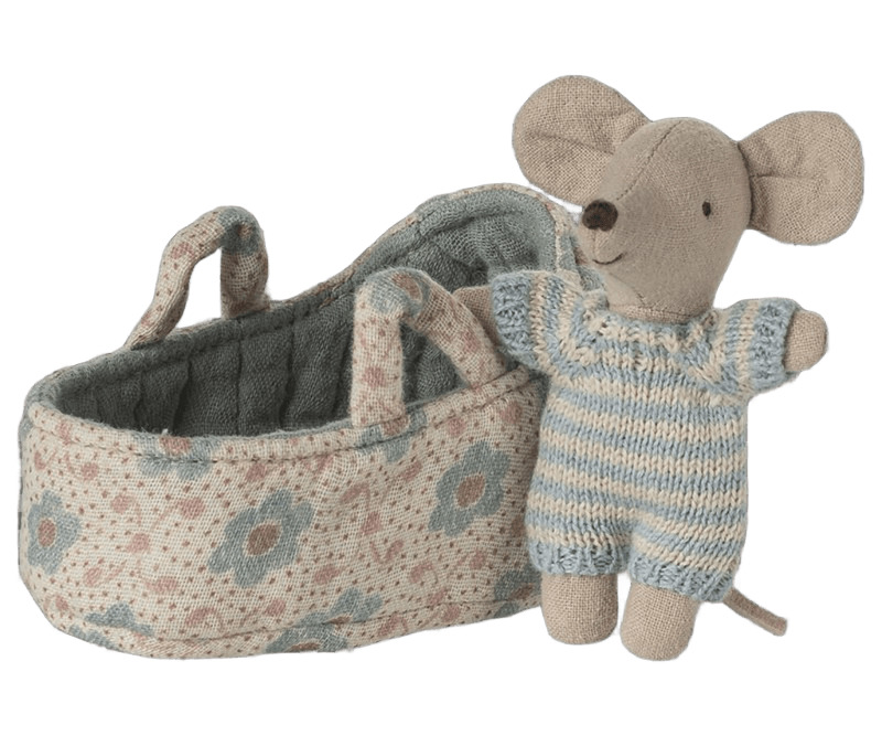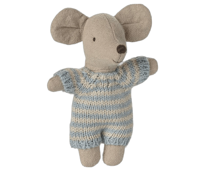 Un piccolo topolino di Maileg in un abito lavorato a maglia morbido e a righe. Dorme per ore nella sua piccola navicella trapuntata. Altezza topo: 6 cm