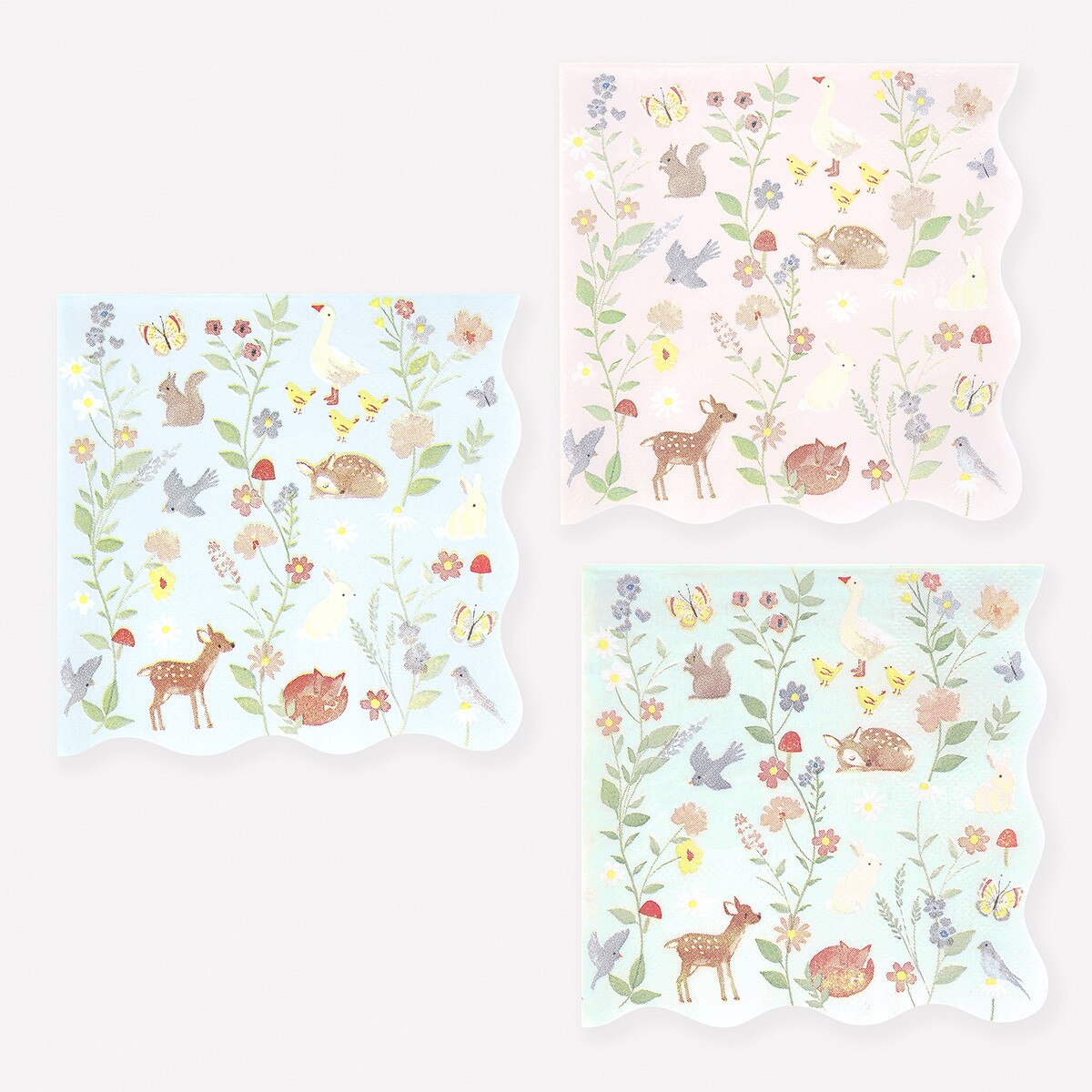 La collezione Little Animals di Meri Meri è piena di fascino da fiaba, ispirata ai libri per bambini d’epoca, alle animazioni degli anni ’40 e alle classiche carte da parati floreali. Questi piccoli tovaglioli di carta raffigurano delicati acquerelli, come oche e cerbiatti, incastonati tra una flora delicata, per portare una dolce bellezza al tavolo della tua festa. I bordi ondulati aggiungono un tocco giocoso. Perfetto per compleanni piccoli o baby shower.